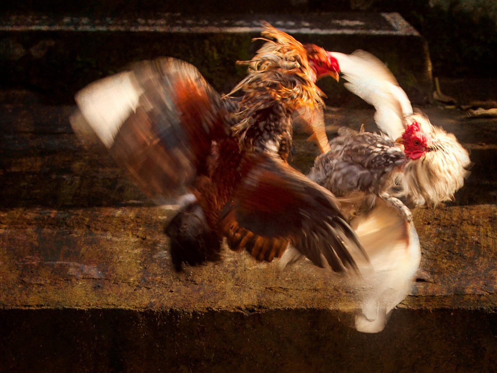 The operation is very neat and organized. He’s got a goat in there for keeping the ground cover low, and a guard dog. These cocks are beautiful; sleek feathers, muscular builds, and massive spurs on their legs. They exude an air of dominance and power. On occasion, I have seen a car or two parked up close and what looks like deals being made.
